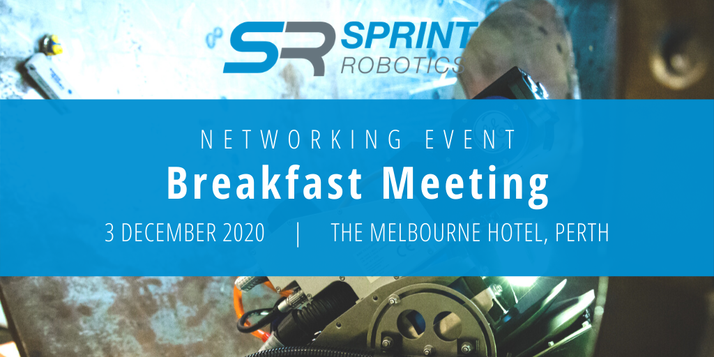 The SPRINT Robotics Breakfast Meeting is a free networking event in Perth organized by the SPRINT Robotics Collaborative. This morning face-to-face meeting is a follow-up of the Australian Sundowner held in October, offering asset owners and operators in the region the opportunity to work towards building a robotics ecosystem and encourage cross-company collaboration. Central to the Breakfast Meeting will be robotics use-case deployments from operators in the region who will share their experiences as well as identify current challenges and potential improvements. Date & time Thursday, 3 December 2020 7:30am-9:30am Location The Melbourne Hotel 33 Milligan Street, Perth WA 6000 Australia Open for SPRINT Robotics members & non-member asset owners, operators & solution providers in the region This networking event is free of charge, limited numbers are available. Please register to attend.